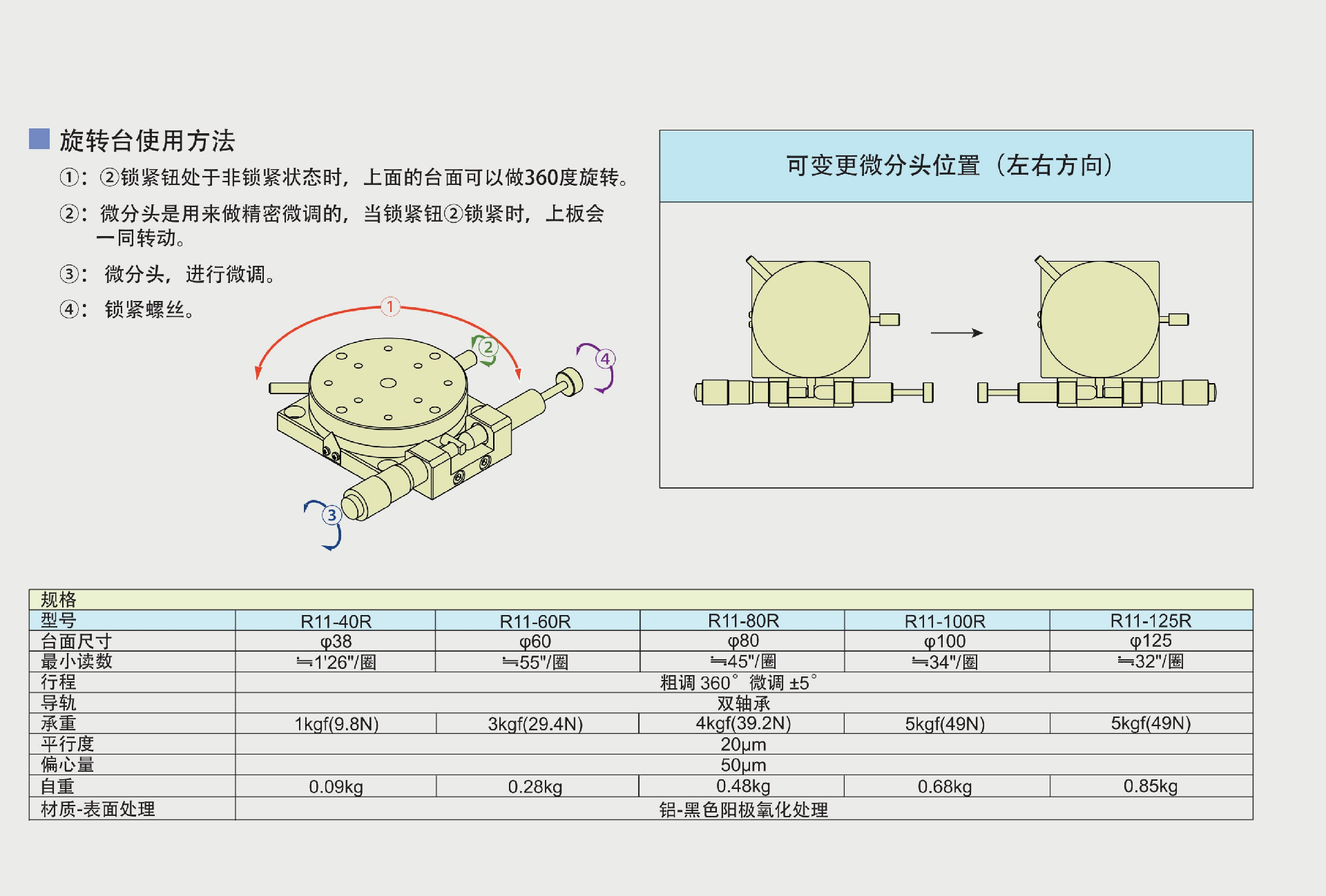 特点:双轴承设计,承重大,转动平滑。